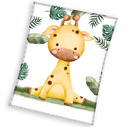 Dětská deka se malou žirafkou bude nádherným doplňkem nejen do dětských pokojíčků, především pro nejmenší děti. Malá žirafka sedí na travičce a zvědavě pozoruje co vše se kolem ní zajímavého děje. Zachumlejte své nejmenší děti do hřejivé mikroplyšové deky, kterou oceníte jak vy, tak i vaše děti nejen v chladných zimních dnech. Deku doplňuje lem, který obepíná celý okraj deky a je navíc dvakrát prošitý, což zajišťuje pevnost a odolnost celé deky. Mikroplyšová deka se pyšní certifikátem Oeko-Tex Standard 100. Mikroplyšový materiál má jemný a sametový vzhled s krátkými vlákny, které vypadají jako korálové útesy, odtud pochází jeho název. Údržba deky je velice snadná, držte se při praní symbolů, které jsou uvedeny na obale. Odstřeďujte při nižších otáčkách. Nepoužívejte při praní prací prostředky s obsahem bělidel a rozjasňujících substancí..