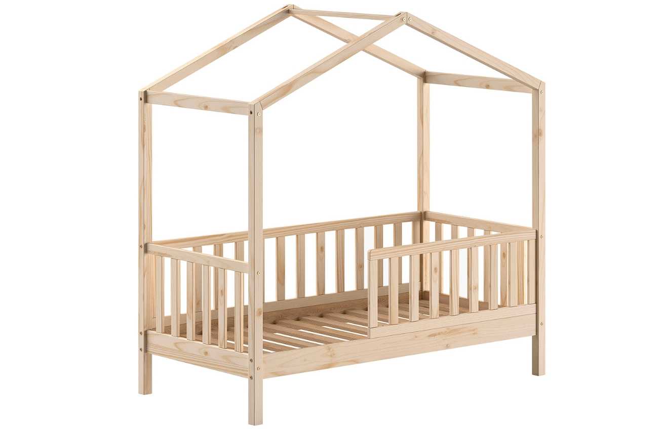 Minimalistická postel Vipack Dallas vás okouzlí svým hravým, leč jednoduchým designem dřevěného domečku. Vzdušnou konstrukci můžete vyladit například girlandami, lampióny, světýlky či závěsy. Místo pod postelí pak lze využít jako úložný prostor na hračky, doplňky nebo malé kufry. O bezpečnost se postará lamelová zábrana, díky které se nemusíte bát nechtěného pádu z postele. Útulný domeček v přírodní barvě se hodí do moderních interiérů a dětských pokojů.