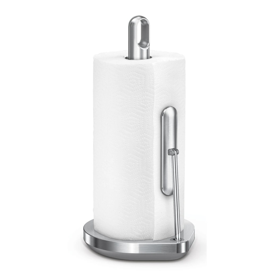 V kuchyni se vždy hodí mít po ruce papírovou utěrku. Držák papírových utěrek od firmy Simplehuman má dostatečně pevnou základnu a zajišťovací rameno, které drží roli utěrek vždy vcelku. Lehkým trhnutím pak oddělíte jeden nebo podle potřeby více ubrousků a role papírových utěrek zůstane dál bez odmotaného konce. Díky otvoru na horním konci držáku lze ho snadno přenášet z místa na místo. Držák je vyroben z oceli a je na něj poskytována záruka 5 let. Pro role do průměru 17 cm..