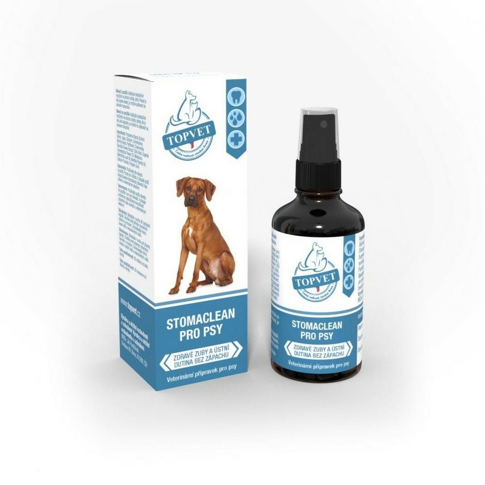 Stomaclean pro psy, zdravé zuby a ústní dutina bez zápachu. Veterinární přípravek pro psy. Originální receptura vyvinutá na základě nejnovějších poznatků moderní fytofarmacie.Ústní sprej Stomaclean je prostředek pro péči o ústní dutinu psů. Díky unikátní kombinaci účinných látek (propolis, máta, TTO, hřebíček aj.), samozřejmého taninu, fluoru a kyseliny citronové, má pozitivní vliv nejen na stav dásní a sliznic, ale i zubů. Omezuje tvorbu zubního kamene, plaku i zubního kazu, pomáhá odstranit již vytvořený zubní kámen, prodlužuje efekt odstranění zubního kamene, vykazuje hojivý a regenerační účinek na dásně a další měkké tkáně v dutině ústní, např. při zánětu. V neposlední řadě odstraňuje nepříjemný zápach z dutiny ústní.Návod k použití: aplikujte dostatečné množství na sliznici dutiny ústní. Pokud je váš pejsek lekavý, je možné aplikovat na vatovém tamponku. Ingredients: Propylene Glycol, Alcohol Denat., Aqua, Glycerin, Commiphora Myrrha Resin, Panthenol, Chamomilla Recutita Flower Extract, Citric Acid, Eugenia Caryophyllus Flower Oil, Melaleuca Alternifolia Leaf Oil, Mentha Piperita Oil, Sodium Fluoride, Propolis CeraUpozornění: používejte dle návodu k použití. Pouze pro zvířata. V případě potíží doporučujeme konzultovat zdravotní stav zvířete s veterinárním lékařem.Skladování: skladujte v suchu při pokojové teplotě. Chraňte před přímým slunečním zářením a mrazem. Uchovávejte mimo dosah dětí a nepoučených osob.Doba použitelnosti: 30 měsíců od data výrobyVýrobce a držitel rozhodnutí o schválení:MVDr. Jiří Pantůček, Brno, Vodova 40, 61200, Česká republika.